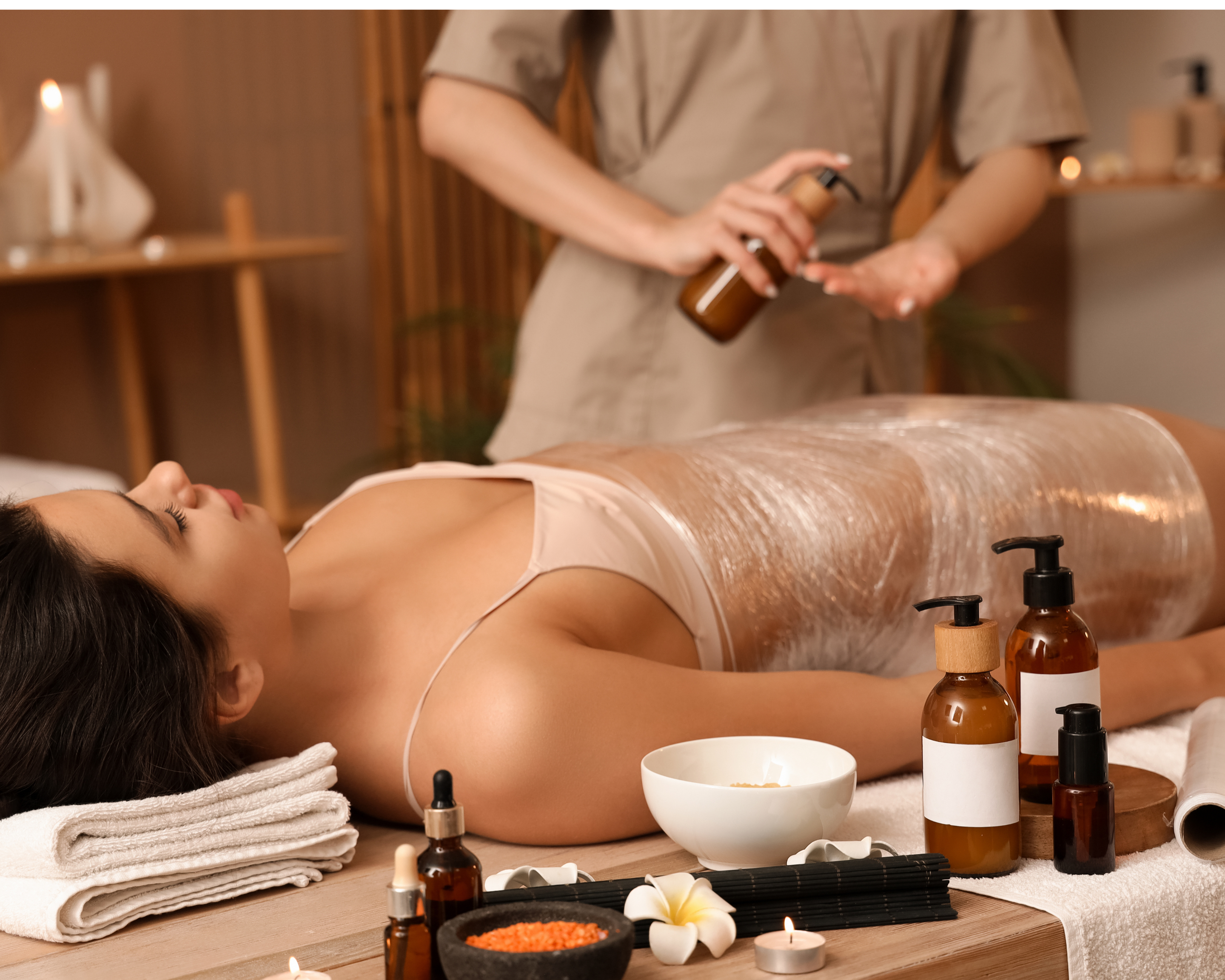 Testtekercselés: Speciális fóliával betekercselem a testet, amely fokozza a hatóanyagok felszívódását és segíti a méregtelenítést.